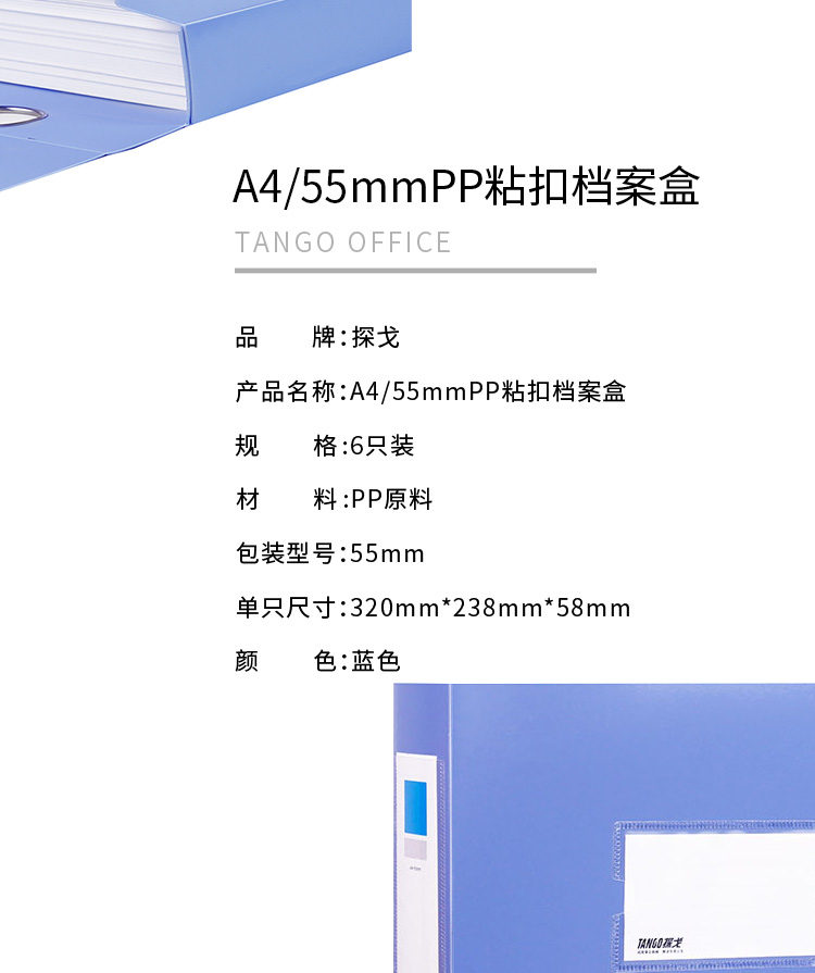 商品名稱:天章(TANGO)檔案盒A4/55mm側寬1個文件資料盒加厚全新PP材質財務憑證人事收納盒歸檔夾辦公室文具用品
